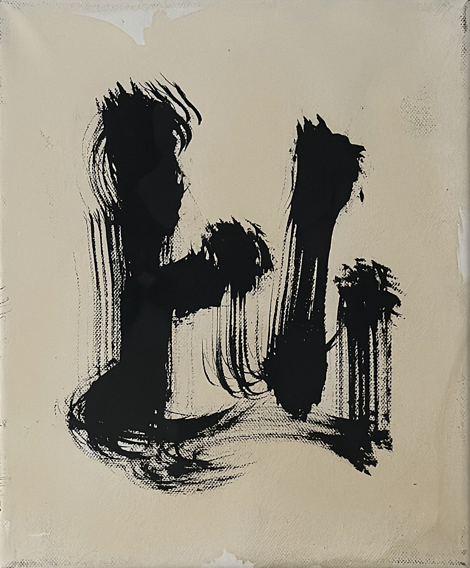 Tusz japoński na płótnie barwionym liśćmi herbaty,