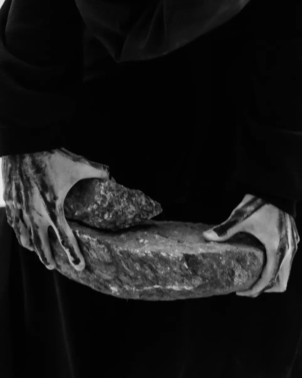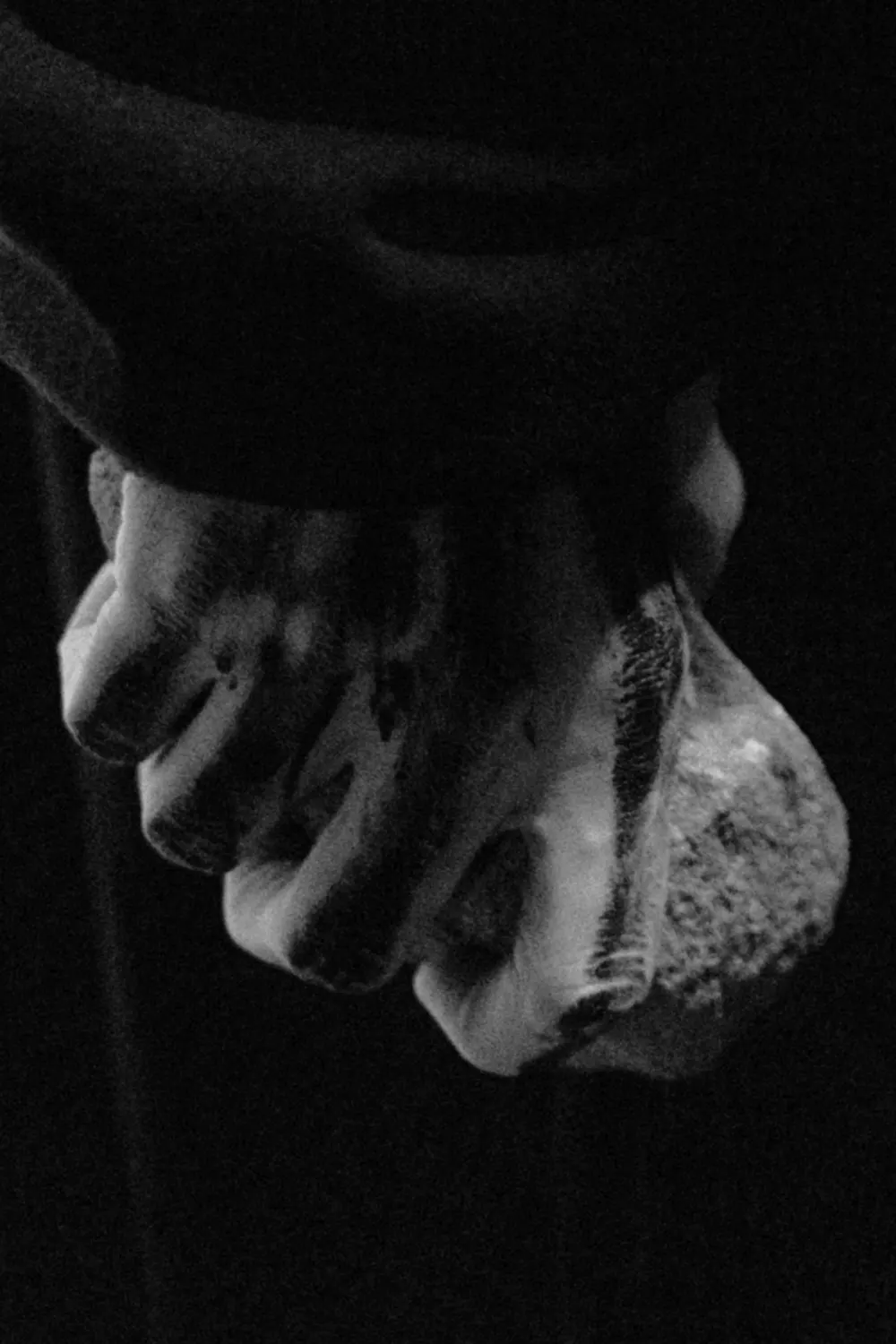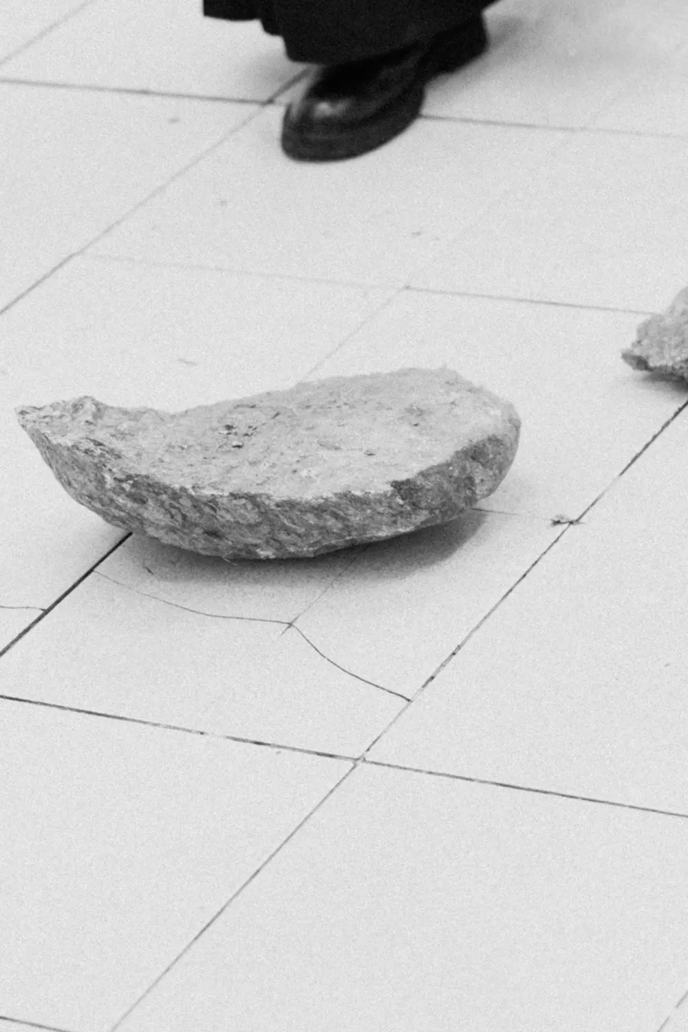 Centralnym motywem pracy stały się kamienie — siedem obiektów różnej wielkości, które zostały ukryte w przestrzeni domku i które artysta intuicyjnie odnajdywał, podążając za narastającym dźwiękiem syntezatora sterowanym przez Molskiego. Kamienie stały się metaforą emocjonalnego ciężaru, jaki każdy z nas nosi w sobie: traum, lęków, niewypowiedzianych wspomnień i trudnych doświadczeń z przeszłości.Porzucenie każdego kamienia w trakcie performansu nabrało znaczenia rytuału oczyszczenia — aktu wyzwolenia spod presji pamięci, która często, choć niewidoczna, wpływa na nasze codzienne życie, decyzje i relacje. Kamień, raz odnaleziony, tracił swą symboliczną władzę, mógł zostać odłożony, oddany, przepracowany.